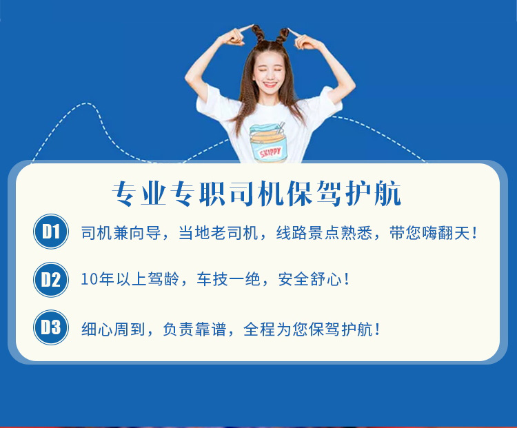 2、費用不含:司機食宿費、行程中與車無關的其他費用。